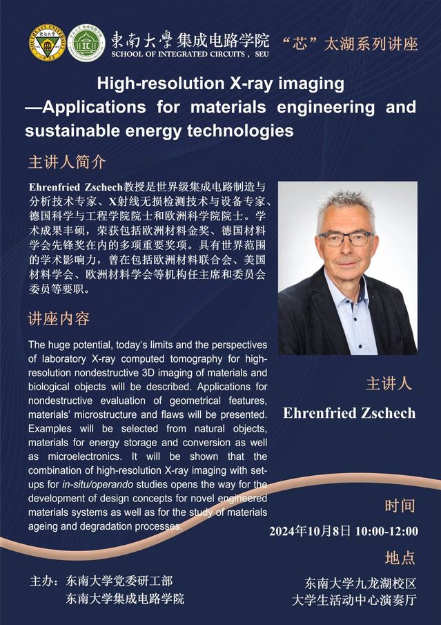 【芯太湖讲座】High-resolution X-ray imaging—Applications for materials engineering and sustainable energy technologies