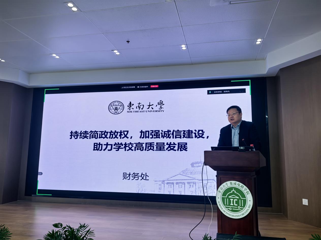 张晓兵处长以《持续简政放权,加强诚信建设,助力学校高质量发展》为题,围绕学校财经纪律新规,详细解读了科研经费使用中的风险防控要点,并结合实际案例,指导教职工在服务高质量发展的同时守住纪律红线。报告内容深入浅出,为学院规范经费管理、防范风险提供了坚实支撑。