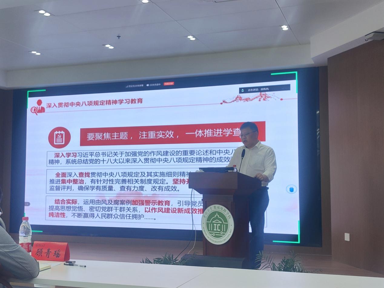 陈波主任以《深入贯彻中央八项规定精神学习教育,扎实推进作风建设》为题,系统阐述了深入贯彻中央八项规定精神的重要性和具体要求。陈主任强调,中央八项规定是长期有效的铁规矩、硬杠杠,必须以严的基调强化正风肃纪,推动作风建设常态化长效化。