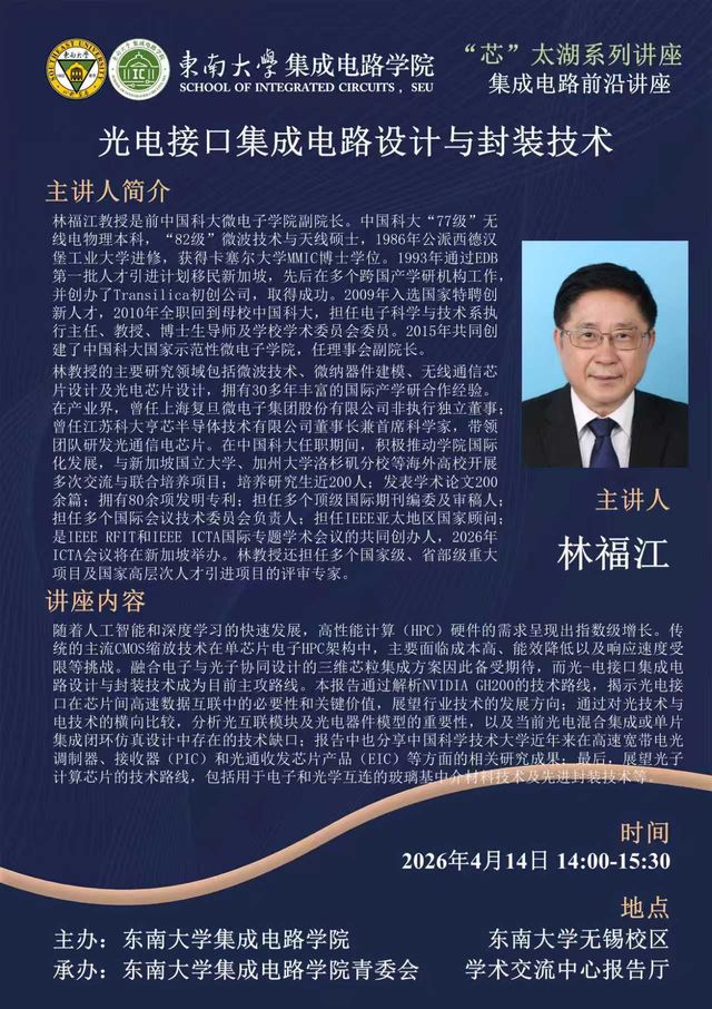 【芯太湖讲座】光电接口集成电路设计与封装技术